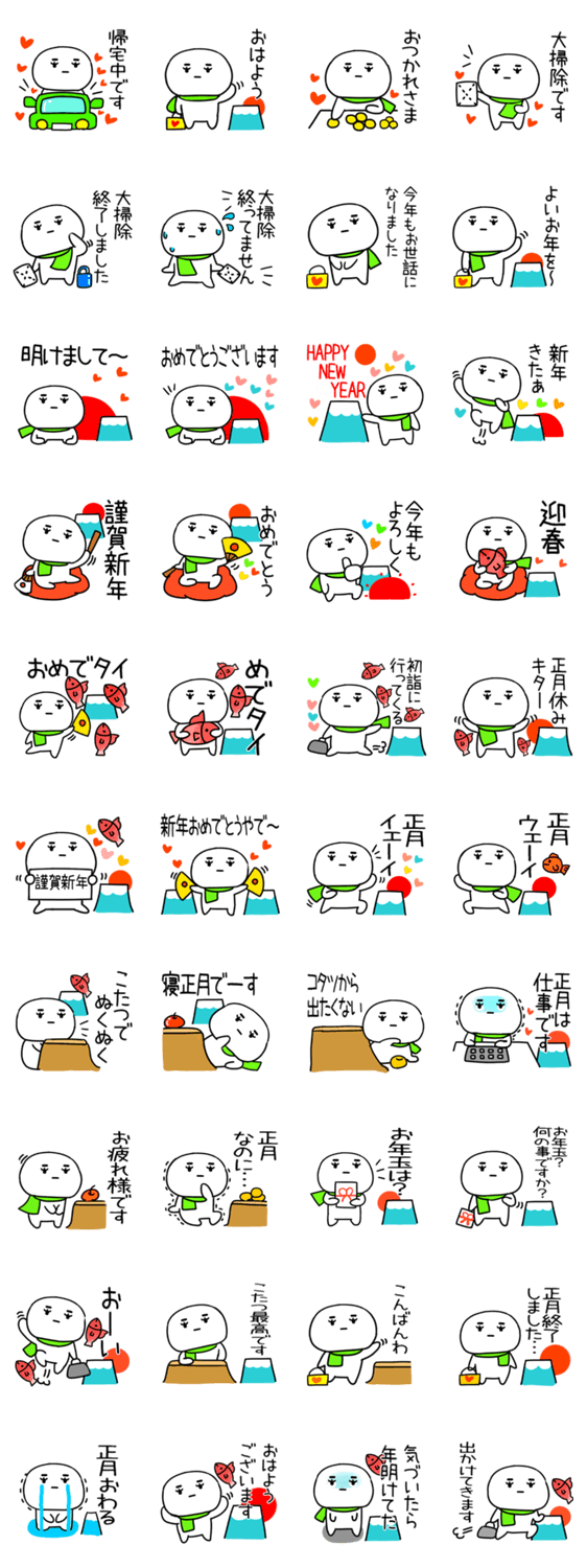 冬に毎日使える日常会話スタンプです。しろまるいキャラのあけおめスタンプ★クリスマス、正月ネタもあります。 もるきゅた作