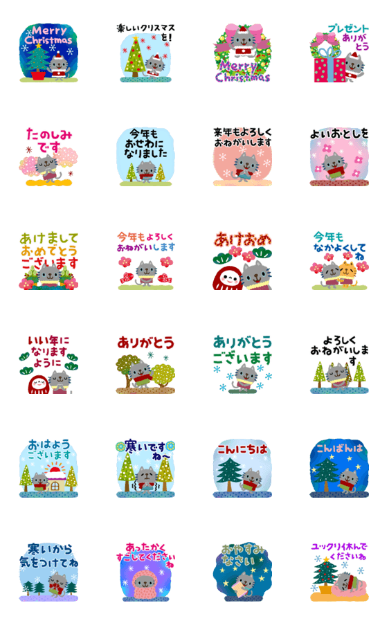 絵本みたいなXmas&お正月*とびだすねこ -LINEスタンプマニア