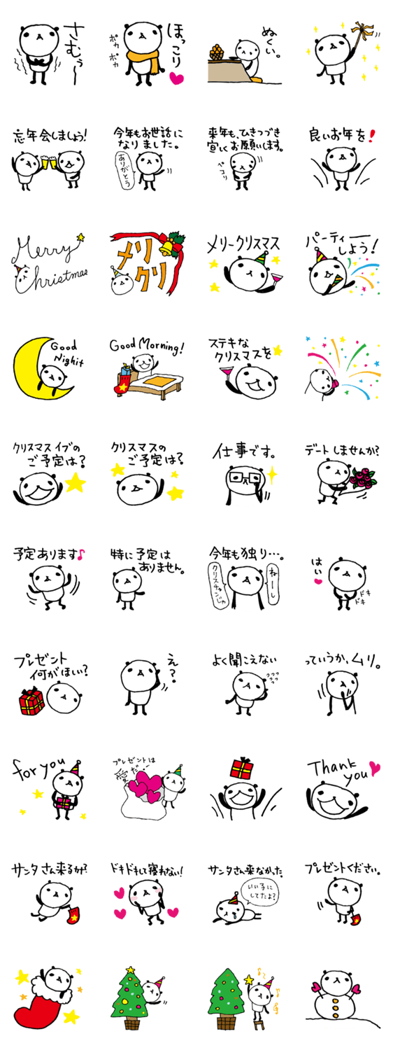 12月に使えるパンダのスタンプです。