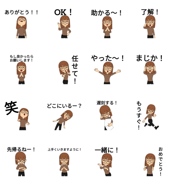 友達に送るスタンプ【眼鏡女子】茶髪 -LINEスタンプマニア