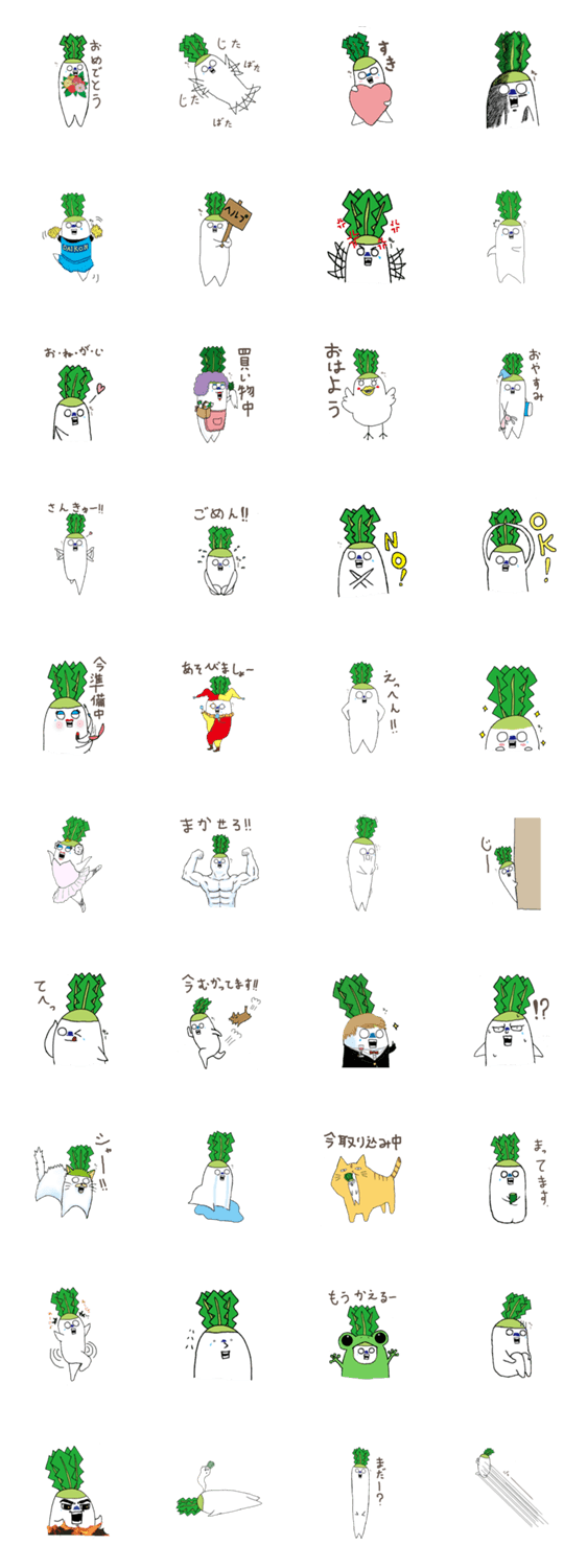 ちょっとオチャメなダイコン君のLINEスタンプです。普段は「キャー」しか言わないダイコン君の色んな表情をお楽しみください!