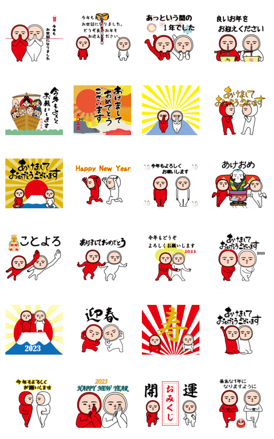 いつもの面白スタンプ(2023)皆様にとって健康で良いお年になりますように※2023/1/3(火)23:59までに購入すると特典「LINEおみくじ」がもらえます。