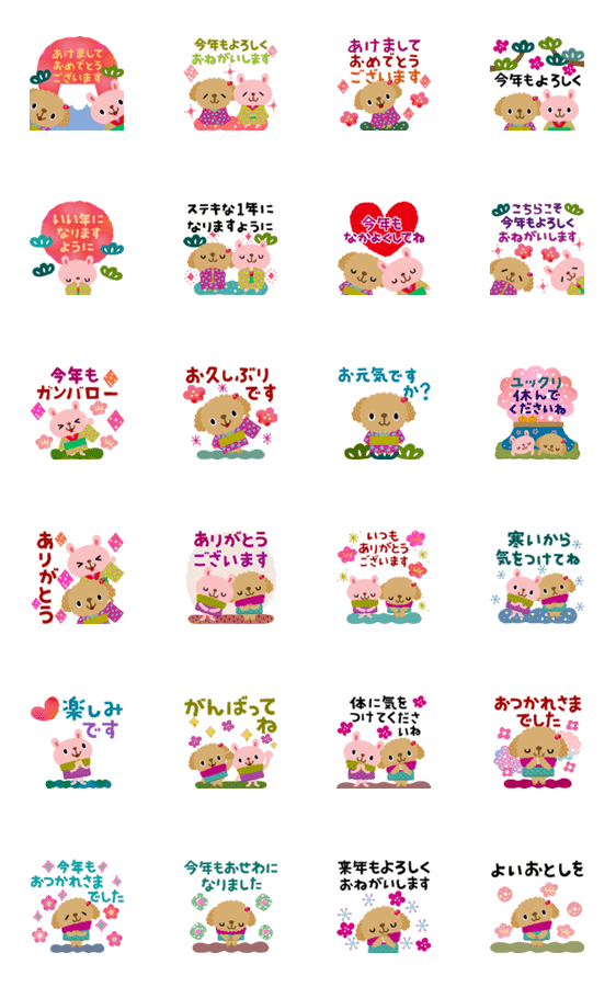 絵本みたいな*飛び出すうさ&トイプーお正月 -LINEスタンプマニア