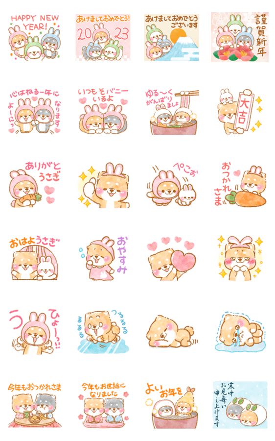 ぽぽんえすのいやしばいぬ(癒し柴犬豆しば)動く/卯/うさぎ/兎/干支/敬語/家族/友達/大人かわいい/年末年始/正月/あけましておめでとう/冬/寒中見舞い/年賀状/新年/日常※2023/1/3(火)23:59までに購入すると特典「LINEおみくじ」がもらえます。