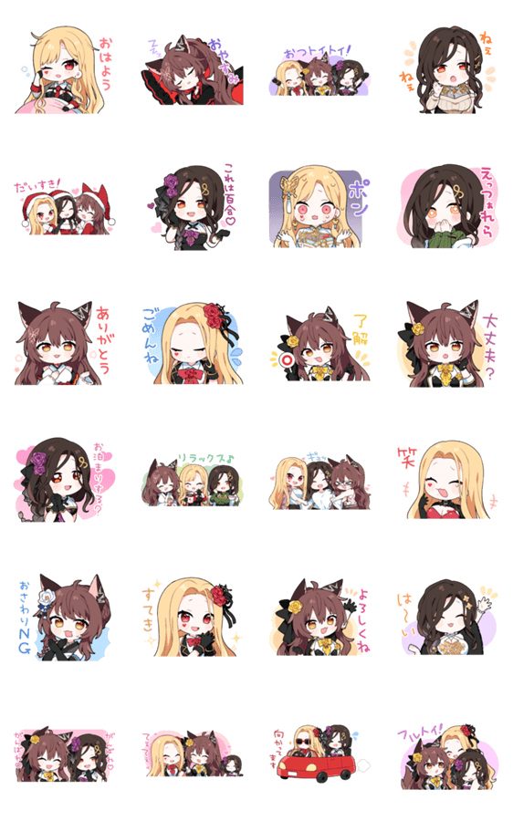 にじさんじのフミ、ルイス・キャミー、白雪巴のお姉さんユニット『フルトイ』の3人組による、時にかわいく時に大人っぽい日常で使いやすいスタンプです♪