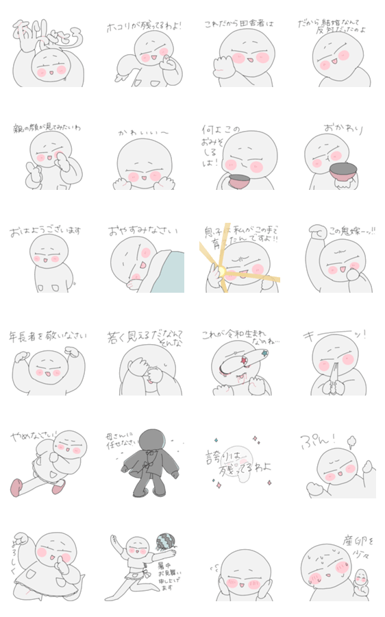 全国のお姑さんが息子さんの奥様に、いつもは言えない本当の気持ちを伝えるためのスタンプです。