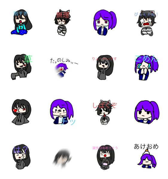 サンウォールとアオイちゃんと主が揃ったスタンプで、ゆるふわな感じに描きました