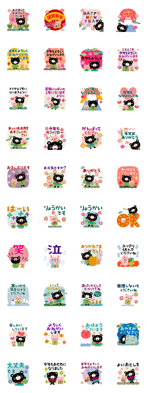 絵本みたいな*くま&うさのお正月 -LINEスタンプマニア