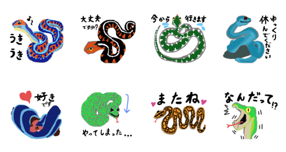 LINEスタンプメーカーでつくったスタンプです。ヘビたち。