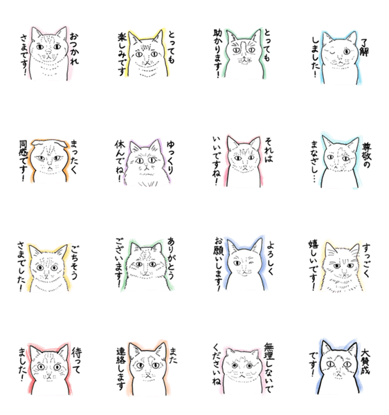 シュールかわいいねこさんたちが日常のやり取りをサポート。