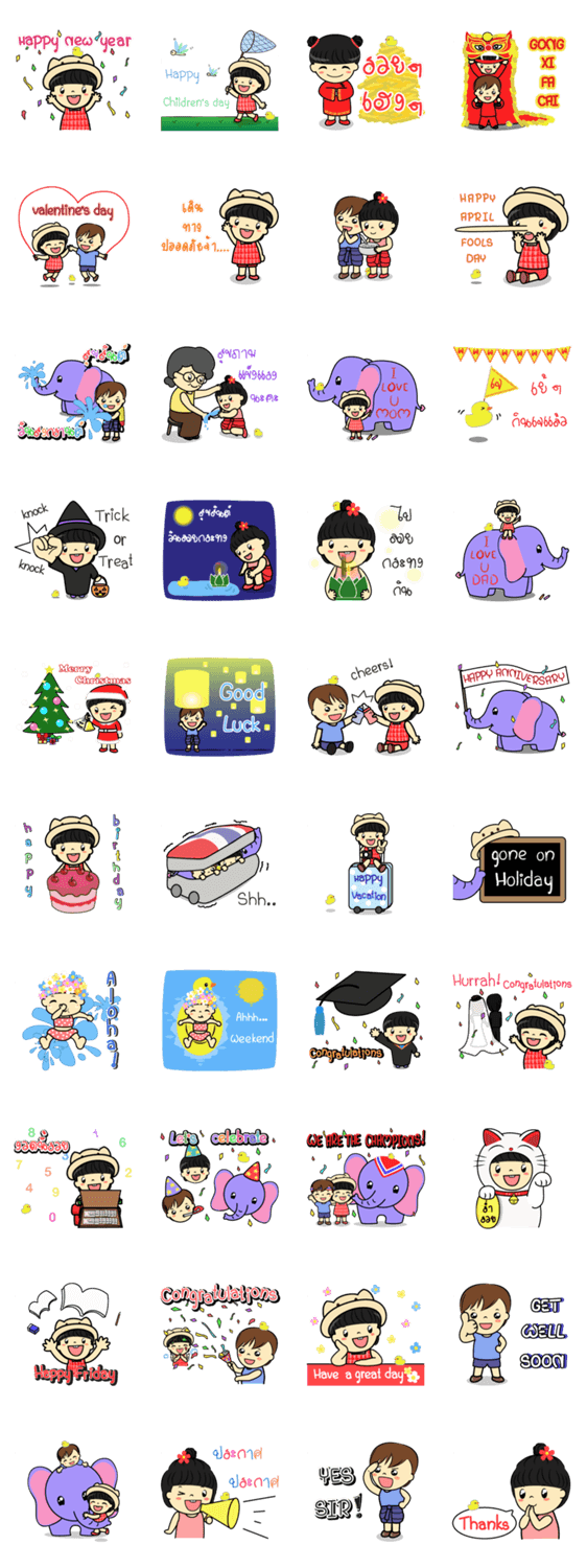 "Tang-Gwa" Cute & funny little girl and friends (tiny duck, "Prompt" little boy and elephant). Let's celebrate with "Tang-Gwa". happy and fun!