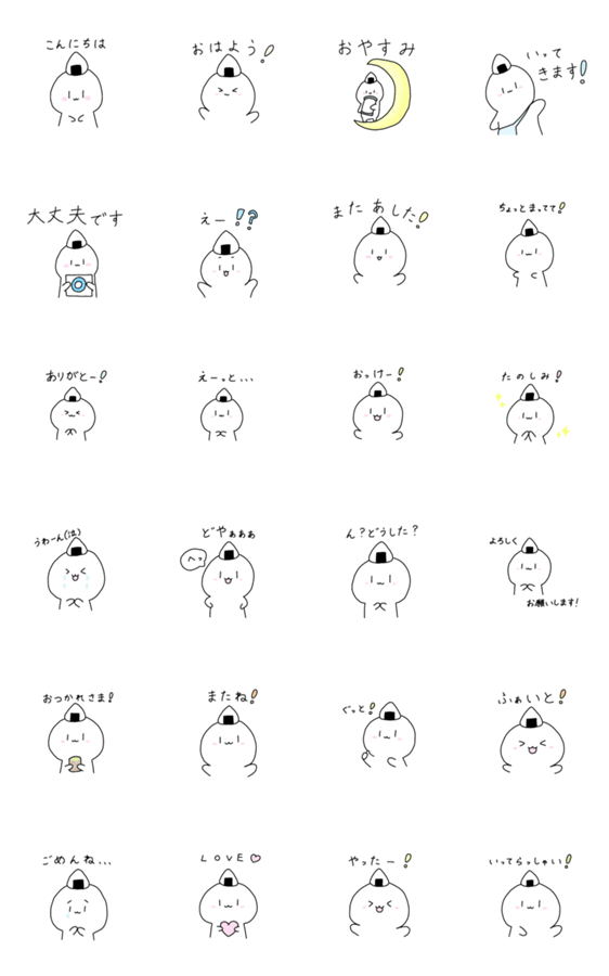 頭の上におにぎりがのっているおこめっちのゆるかわスタンプです。