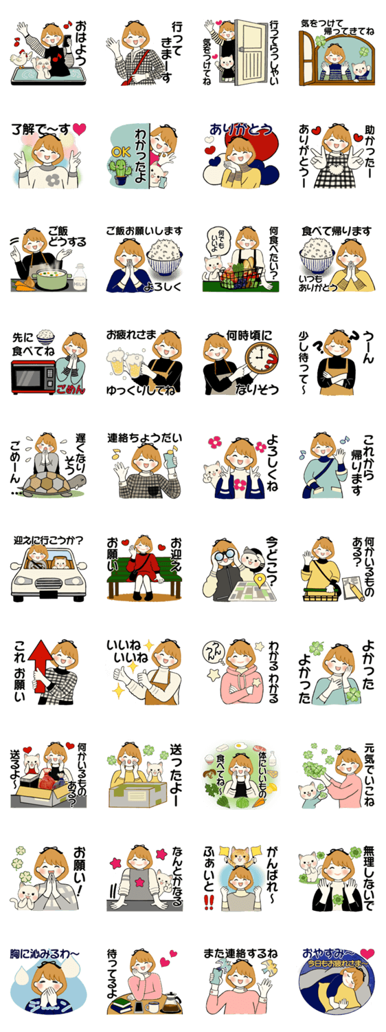 年中使える、日々に愛ある連絡用スタンプです。家族やパートナー、親しい人と毎日気軽に使えて便利です。共に暮らす大切な人、離れて暮らす大切な人と楽しく使って下さい。