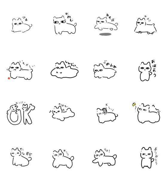 白ネコのあいうえお・・・ってるスタンプ