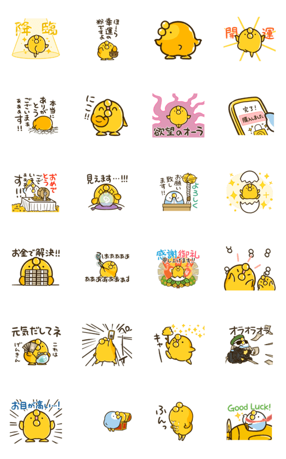 ご利益ありそうな金のあのとり。降臨!( ・8・ ) 家族・パートナー・友達、誰でも毎日使いやすい動くスタンプです! 良いことありますように・・・!!