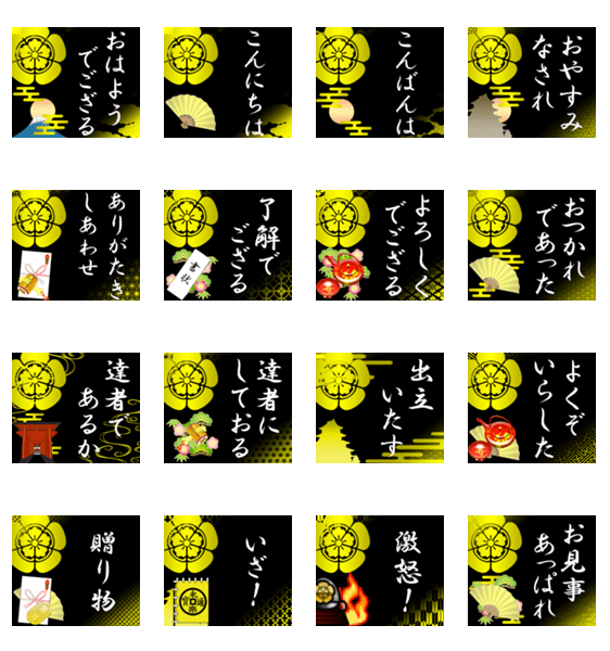 愛知県の戦国武将の信長の家紋です。様々な絵柄とあいさつ文を合わせました。