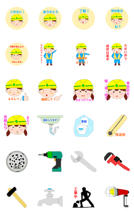 新人さんと打ち解けたい。仲良くなりたい!と思う人の可愛い工事・設備スタンプです。