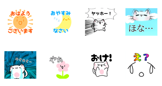 白ネコのあいうえお・・・ってるスタンプ