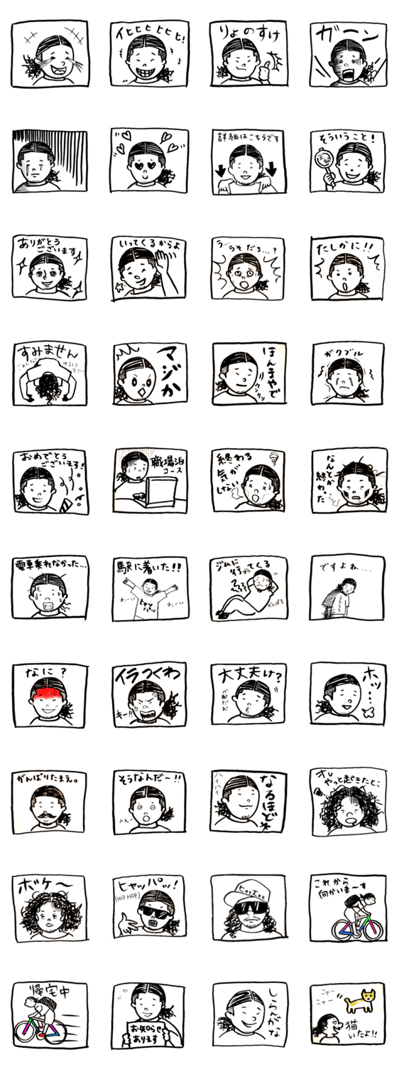 ロン毛でツーブロック、糸目でツリ目の男のスタンプ第一弾。HIP HOPが好きなようです。