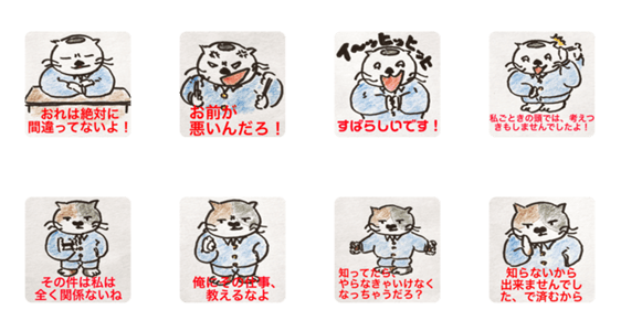 パワハラ部長と個性が強い部下たちのスタンプです。