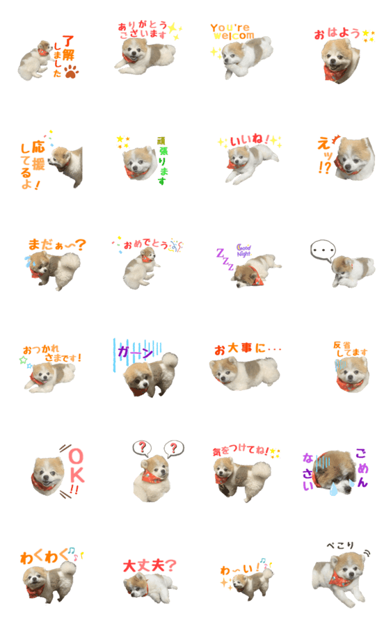 可愛いポメラニアンが日常会話のスタンプとして登場します。