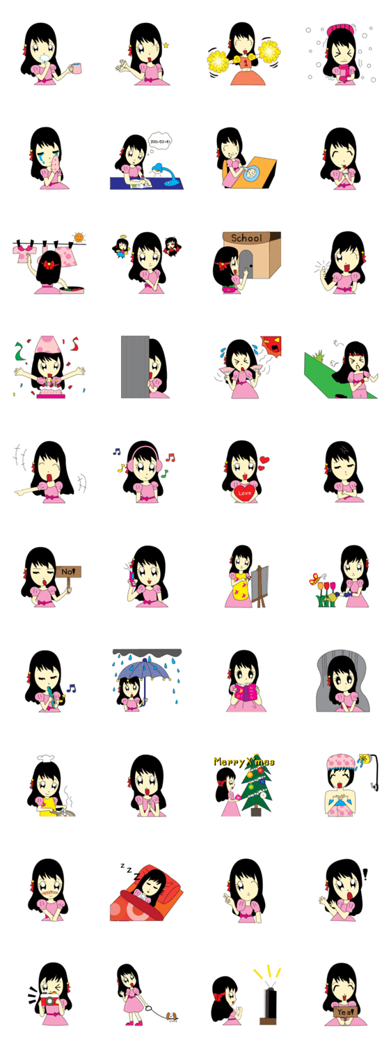Mo is her nickname. She is a thai girl. Mo is 11 yearsold. She likes to draw cartoon. These stickers were designed by her. They are about her life.