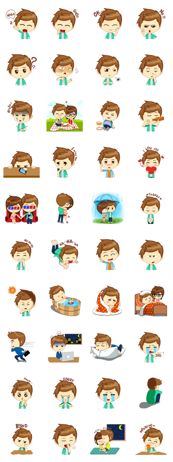 | スタンプ説明 | Lino the cute boy, kind and full of love. He will make your days more beautiful so you don't have to say it, just express your emotion with him. |