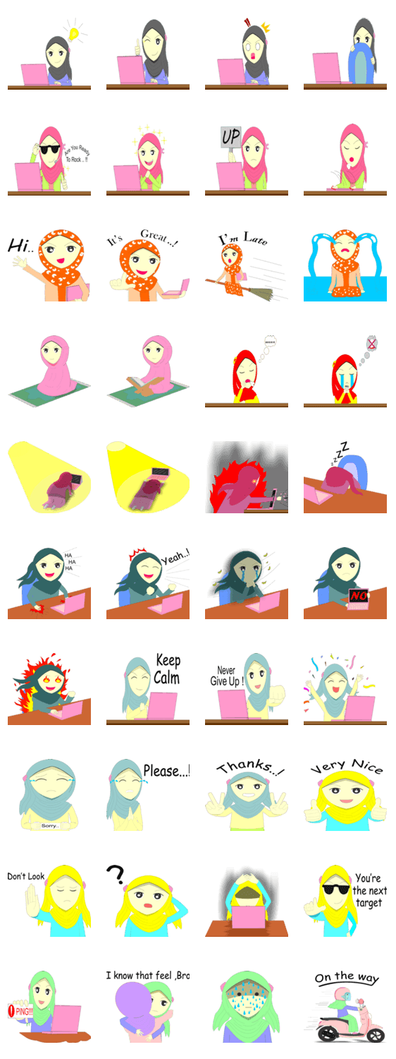| スタンプ説明 | she is hijab girl,but she is genius and always creative in dealing with problems , if she like you use him as your chat emoticons |