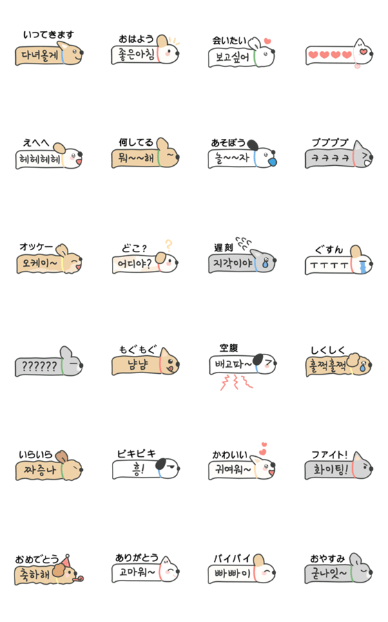 シンプルでかわいい子犬日本語+韓国語吹き出しアニメステッカーです。