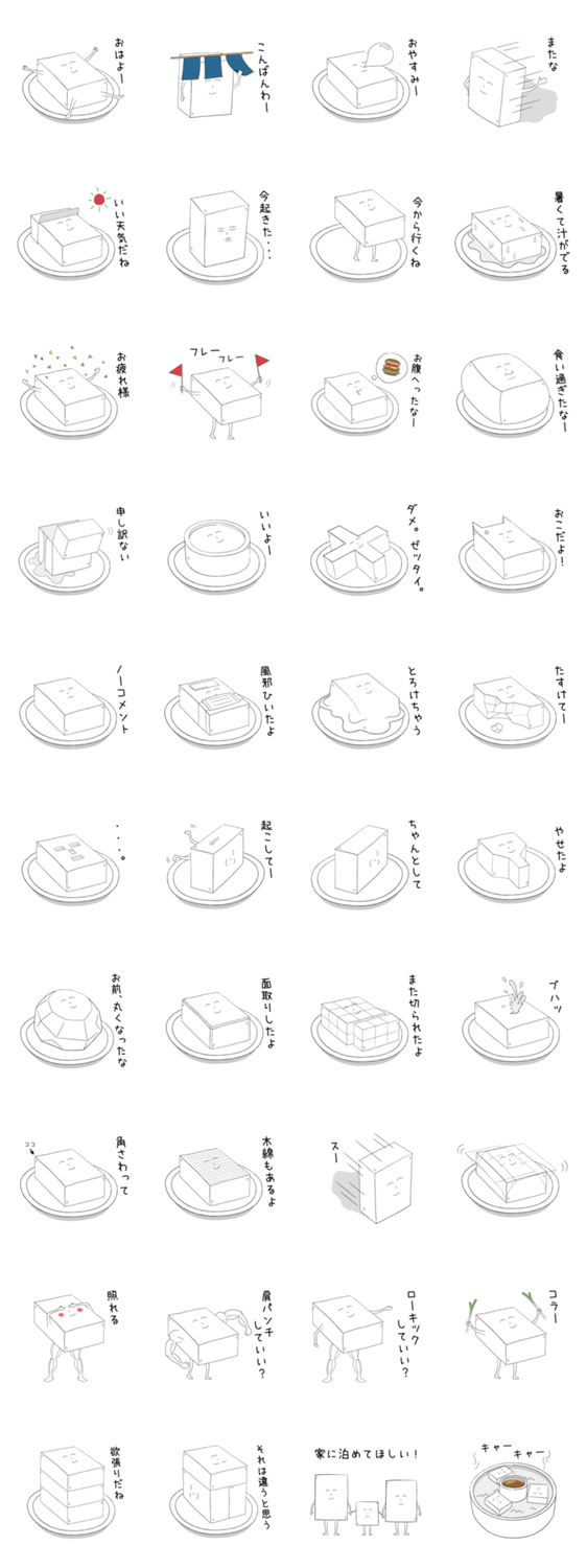 お豆腐のスタンプです。シュールで可愛いですよ。