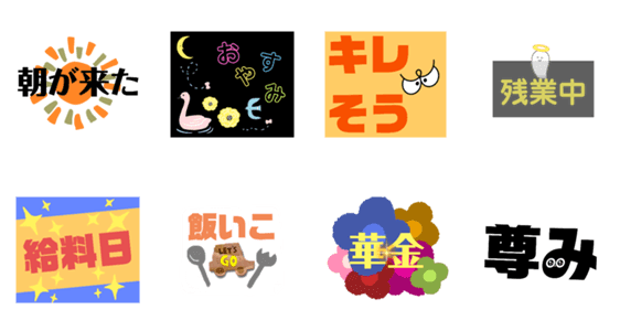 日常会話用。LINEスタンプメーカーでつくったスタンプです。