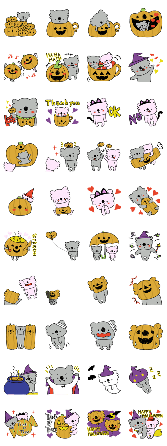 のんびりコアラシリーズからハロウィンのスタンプが登場。春夏秋冬、毎日つかえます。かぼちゃ好きにもおすすめです。
