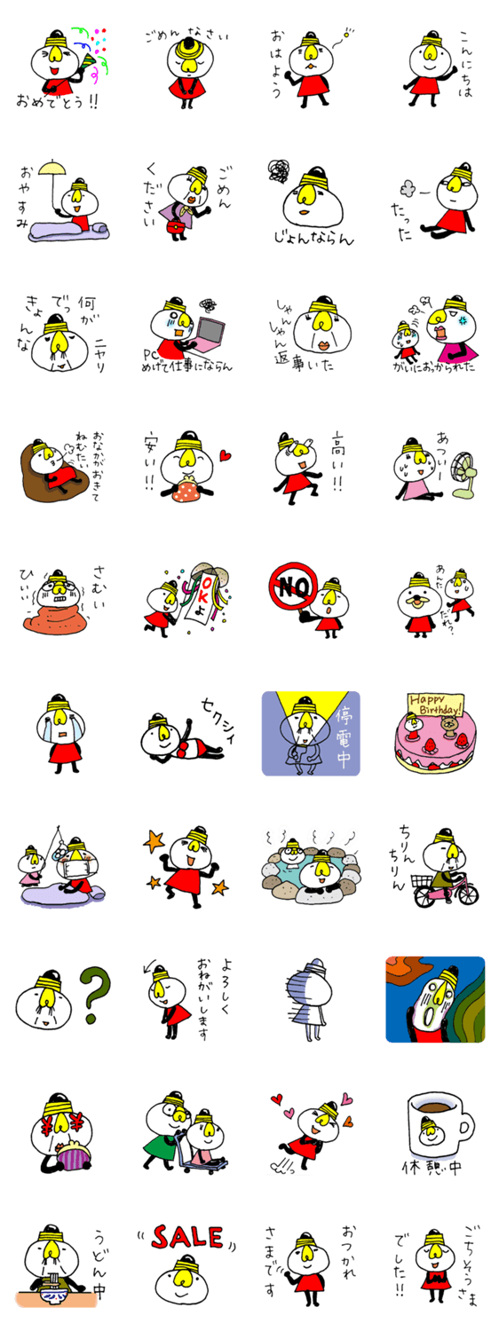香川県高松市にあるまちの電気屋さんのマスコット「でんきゅう君」。でんきゅう君と愉快な家族たちのスタンプです。讃岐弁も使いつつ、ゆるっと気持ちを伝えます。