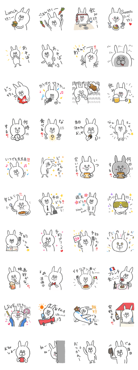 うささんスタンプ第2弾。さらっとお誘いしたいときに、どうぞ!気になるあの子やあの人に、ゆるっとお誘いしてみてはいかがでしょう!
