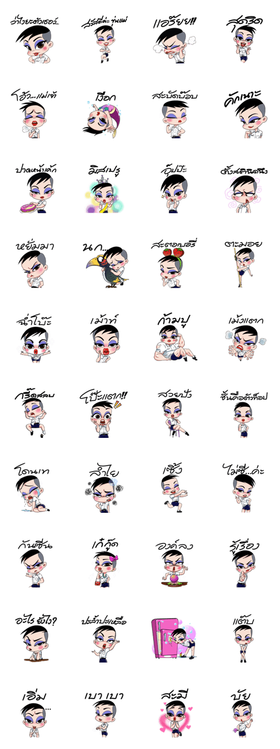 | スタンプ説明 | Wanna add flavors to your messages? Try me! I, Hua Poke Tootsie, may not look like a typical belle of the ball, but I'm funny, sexy and spicy. Give me a bite. |
