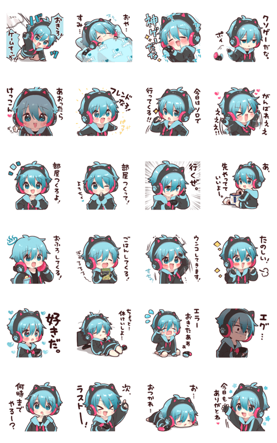 猫耳ヘッドフォンのゲーマーくんスタンプ2です!