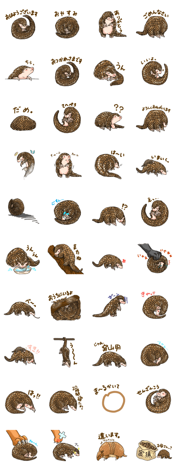 センザンコウは可愛い、そう思って台湾の動物園までセンザンコウを見に行った私がつくったスタンプです。可愛いでしょ、センザンコウ。