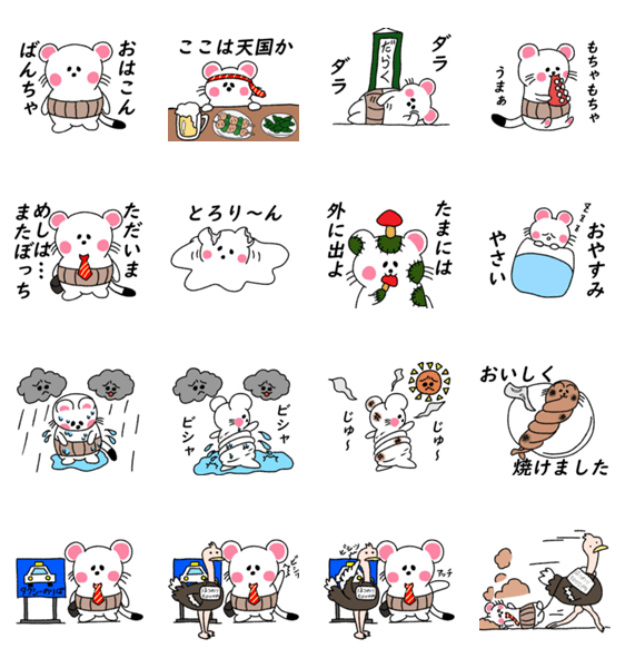 スタンプ説明 だらけたおやじくさいオコジョさん