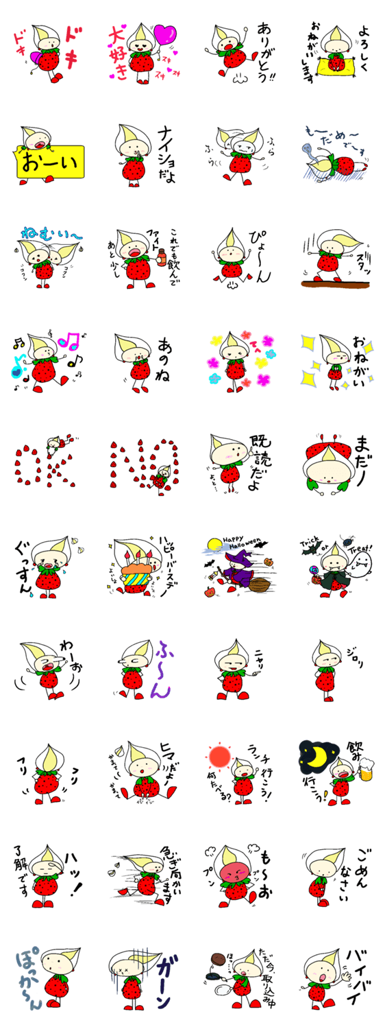 ホイップクリームの「ほいっぴーちゃん」が沢山のメッセージを楽しく、可愛く伝えます。中には続けて使えるスタンプやハロウィンの可愛いスタンプもあります。
