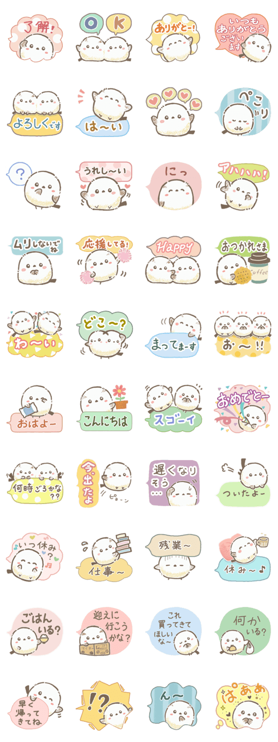かわいい小鳥 野鳥のエナガさんとシマエナガさんの家族でも使える吹き出しスタンプです。/白いことり/便利/毎日使える/キュート/使いやすい/日常会話
