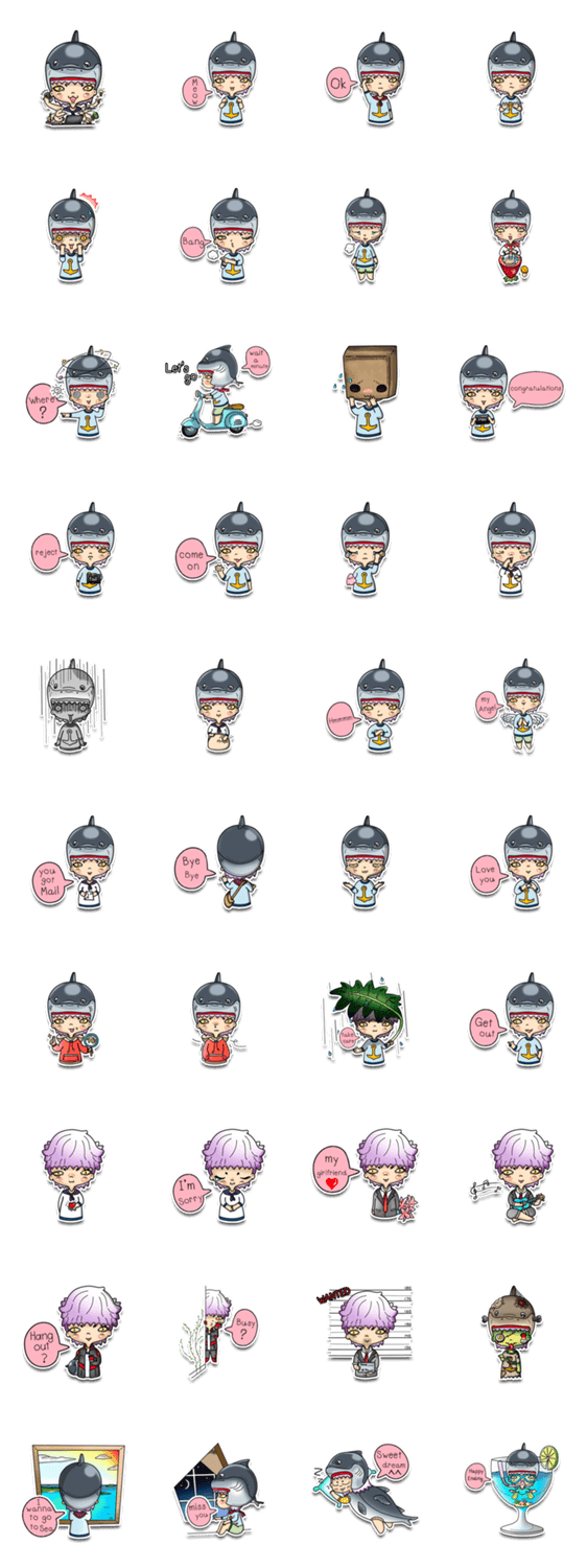 | スタンプ説明 | Boy's bright start to like the sea like a submarine is like. Shark helmets But when I take off my hat with my help load too ^^ v. |