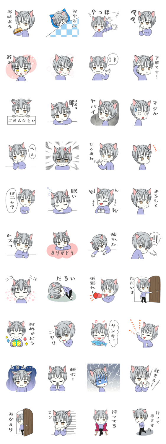 日常で使える、気だるい猫耳男子のスタンプです。 #ねこの日