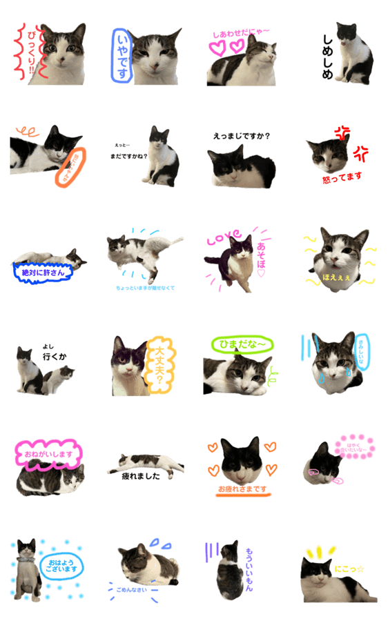 白ネコのあいうえお・・・ってるスタンプ