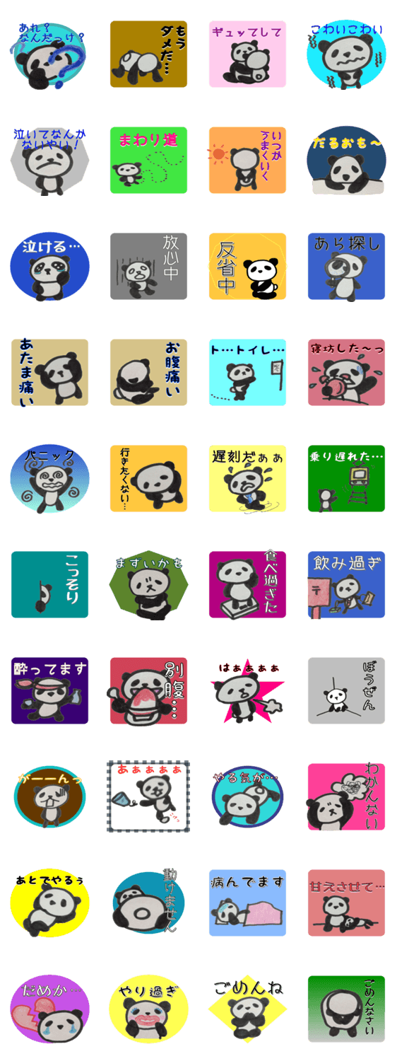 ひだまりパンダスタンプ だめゆる編です!いろいろなシーンでかわいく使ってくださいね