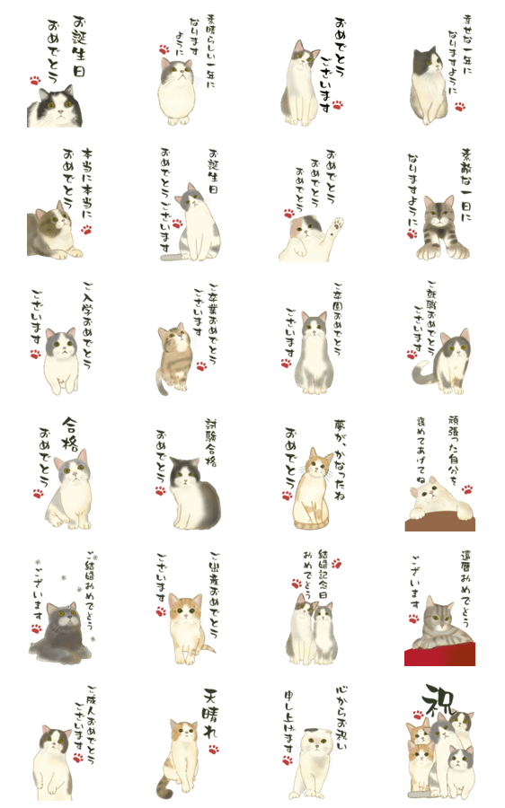 モフ猫達が大事な人に伝えます。 (猫の日/猫/猫スタンプ/ハチワレ猫/おめでとう/誕生日/合格/入学/卒業/シンプル/還暦/出産/結婚/成人/敬語/丁寧/可愛い/HAPPY BIRTHDAY ※このスタンプはトークルームで大きく表示されるBIGスタンプです。