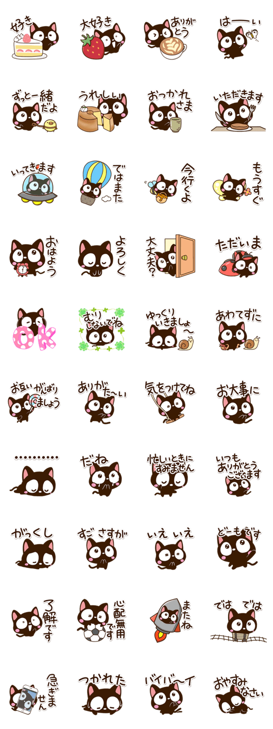 『小さい黒猫スタンプ』の相手を思いやる言葉や、励ます言葉、よく使う言葉等、やさしいクロネコのスタンプです。くろねこ好きな方にぜひ。【かたこ】