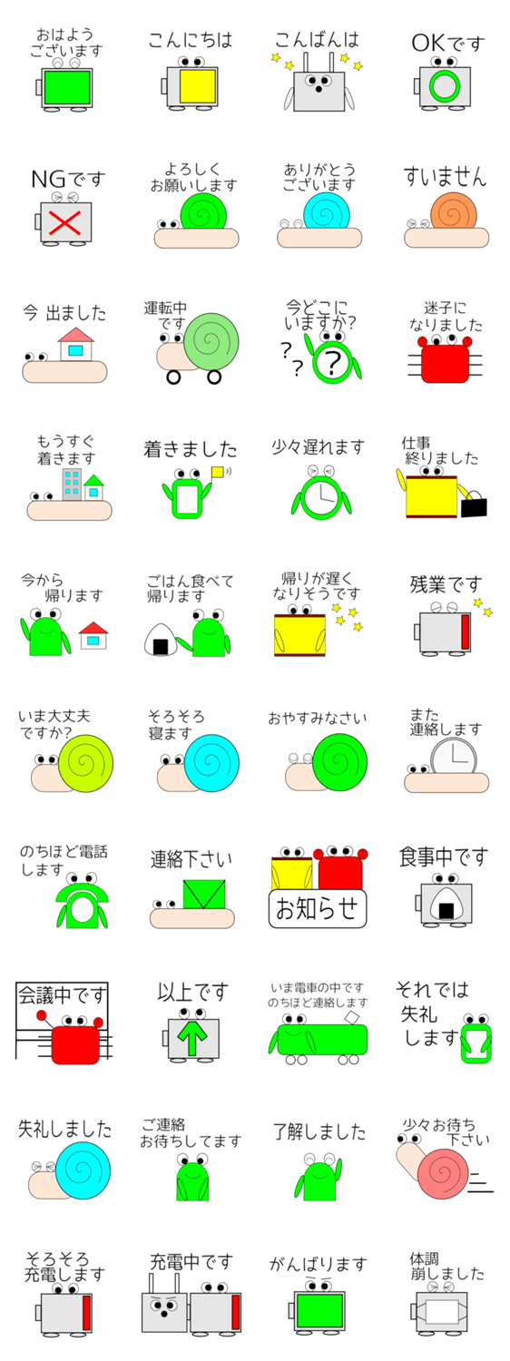 敬語のスタンプ、敬語de日常会話の第2弾。今回は、新しいかたつむりさん、充電器さんを追加しました。