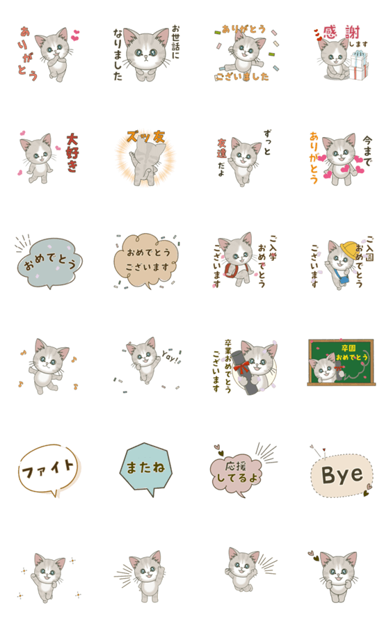 吹き出しと組み合わせて使えるよ! (動く/猫/猫スタンプ/入学/入園/卒業/卒園/おめでとう/ありがとう/ママ/ズッ友/ママ友/家族/友達/パパ/パパ友)