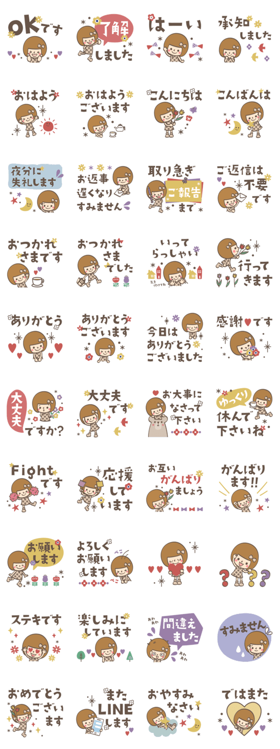 でか文字♡毎日使えるくすみカラースタンプ。使いやすい言葉が盛りだくさん。大人女子・シンプル・おかっぱ・リボン・女の子・大人・可愛い・敬語