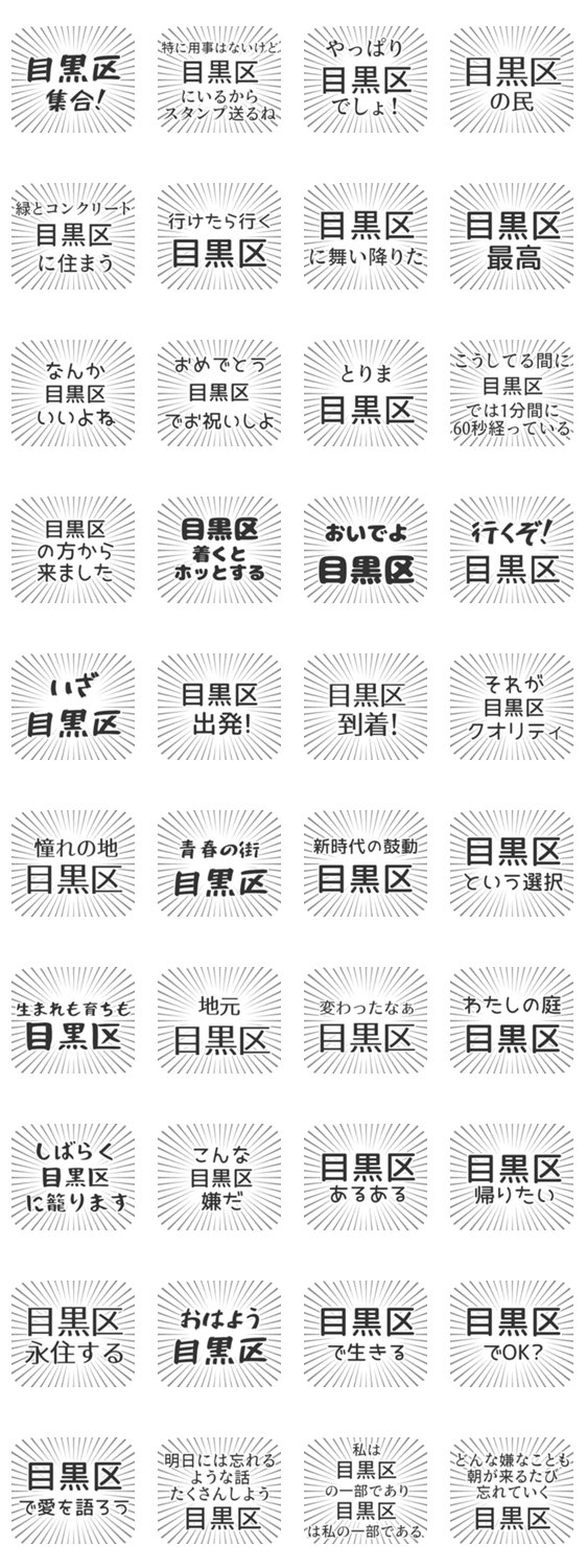 東京23区を舞台にした漫画風セリフスタンプ。集中線で叫べ。地元の人にも憧れてる人にも。面白いのが見つかると嬉しい。集中線。地元愛。